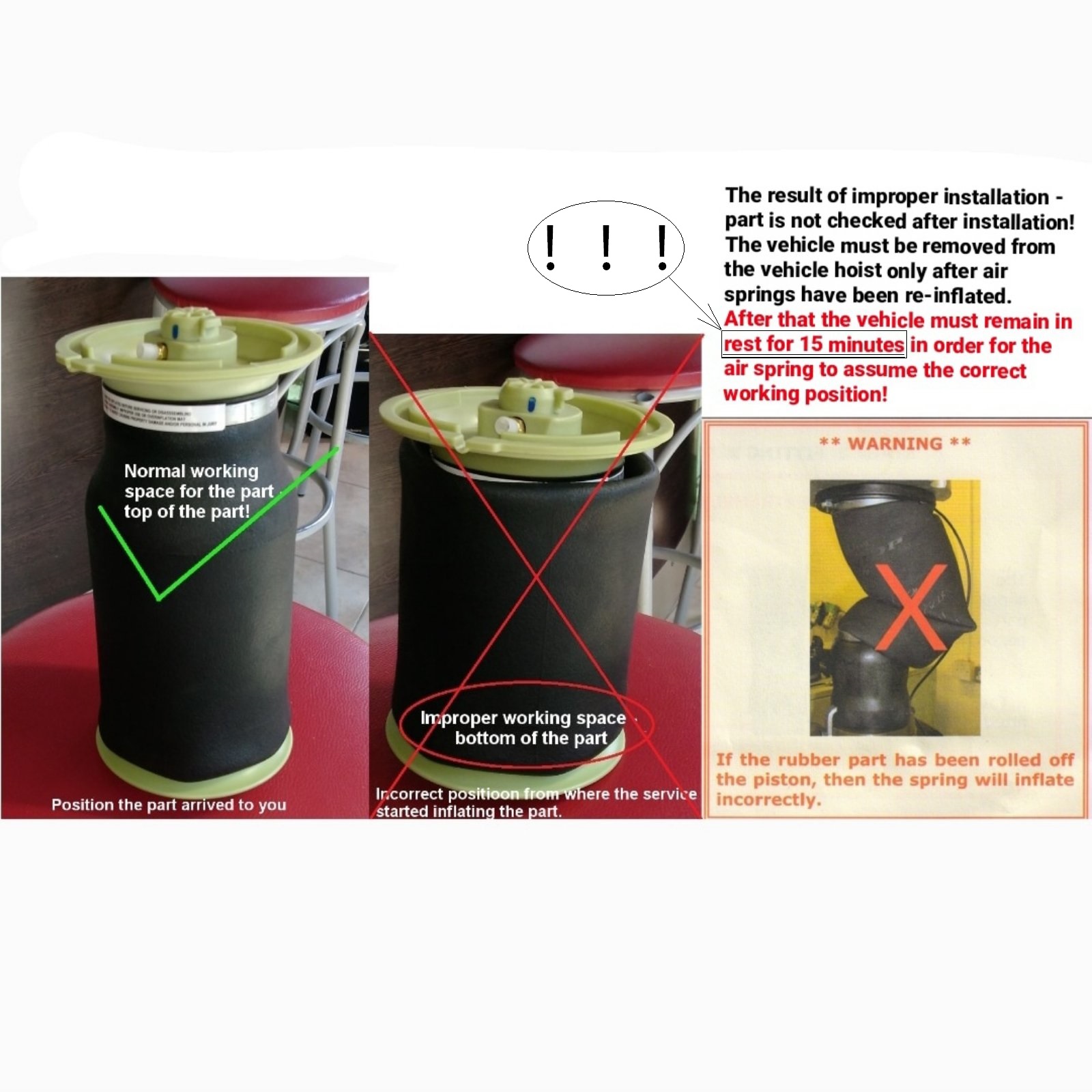 I pezzi (componenti) di metallo sono fatti secondo le precise caratteristiche richieste per le sospensioni ad aria. Nella produzione del pezzo si applica interamente il disegno originale del pezzo stesso che ottimizza le spese di produzione. Inoltre, la gomma usata è di eccellente affidabilità. Indipendentemente da questo si tratta di un pezzo affidabile, non riciclato o rigenerato, quindi totalmente nuovo.